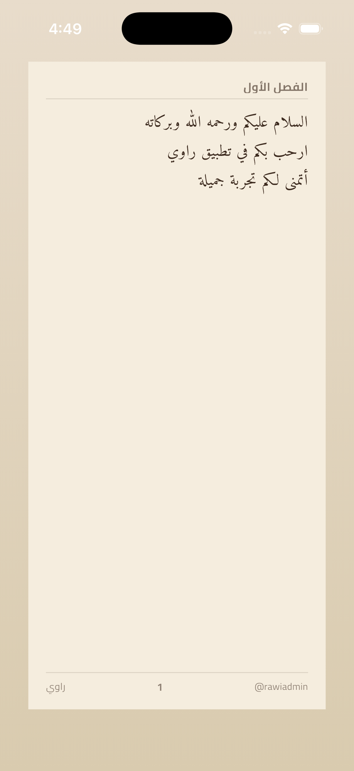 راويّ يحفظ صفحتك، يضبط الإضاءة، ويقترح عليك كتباً تُشبه ذوقك. تقدر تقرأ بدون نت، تُعلّم مقاطعك المفضّلة، وتُشارك اقتباساتك بنقرة واحدة.